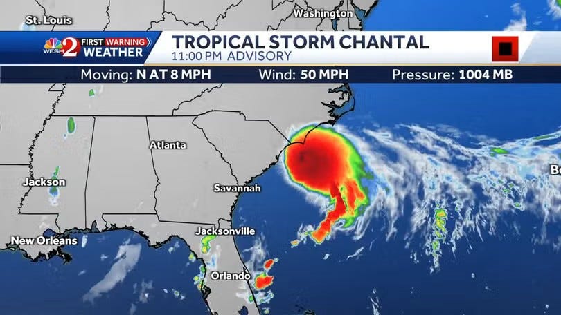We like hurricane forecasting. Perhaps it is our upbringing in an area that got unpleasantly surprised by multiple hurricanes over the decades before weather satellites existed. Perhaps it is all the horrible news about possible missed warnings before the awful flooding in Texas this weekend. Perhaps it is that we are right this instant looking out our window at clouds from the edges of what was Tropical Storm Chantal as they prepare to drop an inch or two of rain on our heads and allow us to take “water the geraniums” off our weekly to-do list.