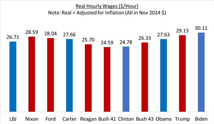 Under President Biden, workers have the highest real hourly wages on average among the last 11 presidents. Despite inflation, workers have never been better off because wages have grown so very much. Merry Christmas!