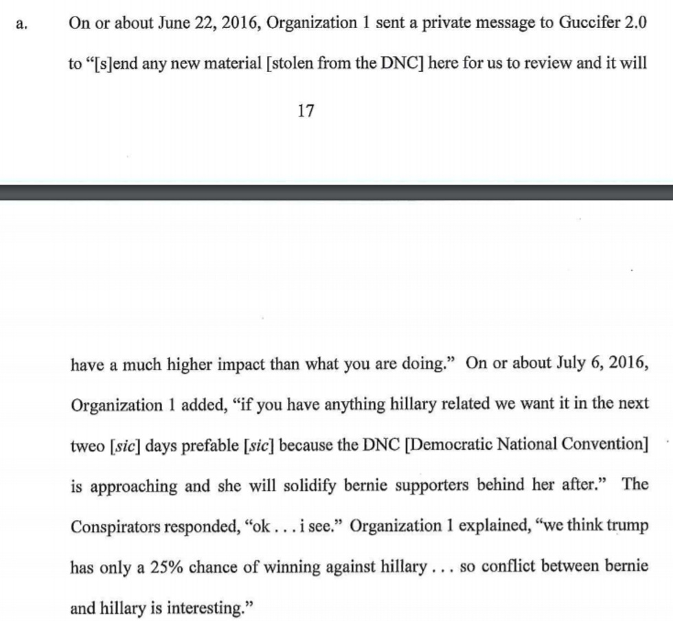 That's all spelled out in Robert Mueller's indictment of all those Russian military intelligence hackers, who used an extremely willing WikiLeaks to aid in their mission of fucking around with the US election: