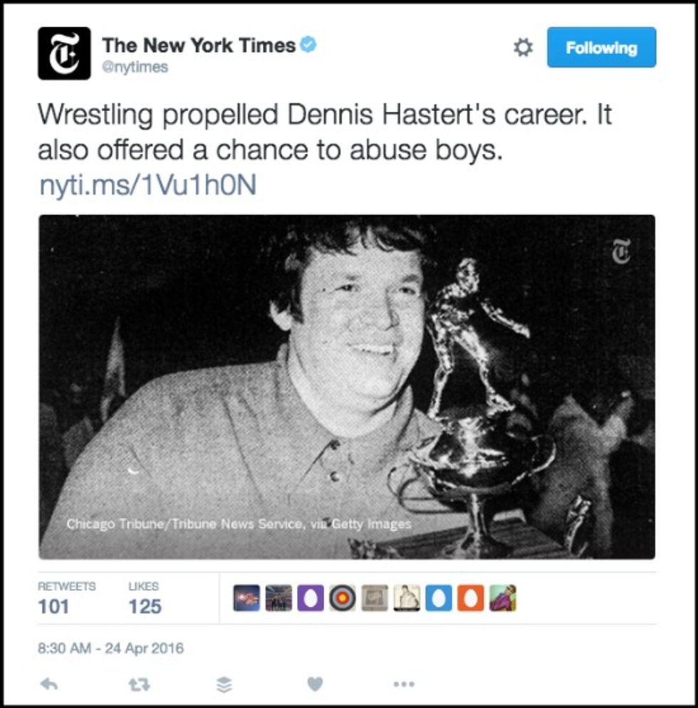 So, lots of Dennis Hastert news these days, huh? We all got to learn that he maybe molested not one, not two, not three, not four, but five kids while he was busy ostensibly being their wrestling coach but really instead being a gross pedophile? Kind of a weird downfall from being the very modern model of a modern major culture scold who impeached Bill Clinton over liking to consensually get it on with ladies not named Mrs. Clinton. Maybe Hastert was pissed at Bill that he didn't just molest children instead, since that is a perfectly sound lifestyle choice for old Dennis? Who can say, really?
