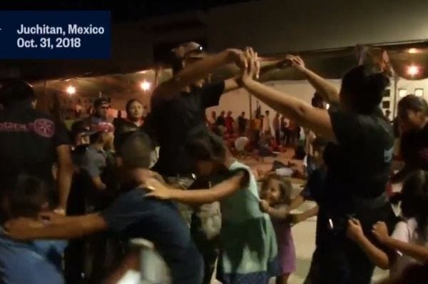 NBC News brings us an important update on the threat posed to America by the caravan of asylum-seeking Honduran and Guatemalan migrants slowly making its way north, still some 900 miles and weeks away from the US-Mexico border. There are children among the families fleeing violence in their home countries, and children, being children, don't give a fig for US racial panics that have been weaponized to boost rightwing turnout. Children want to play.