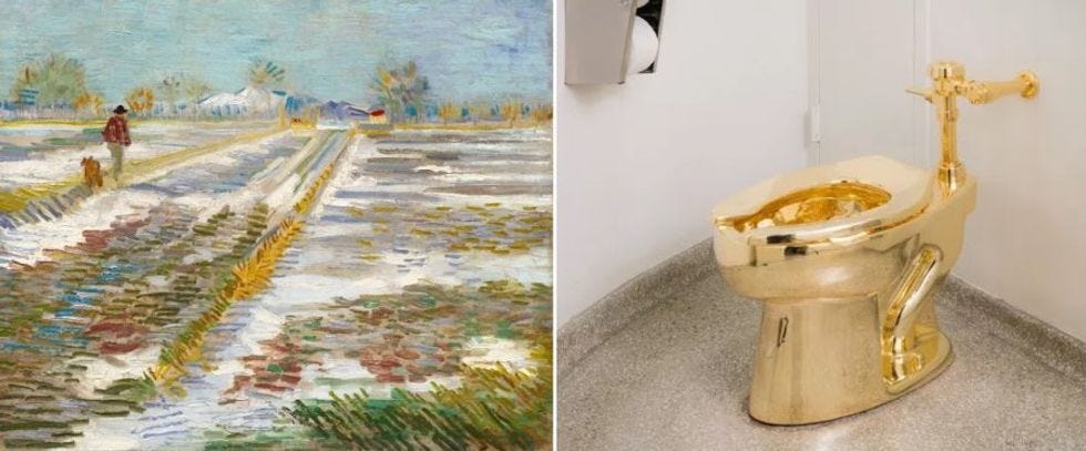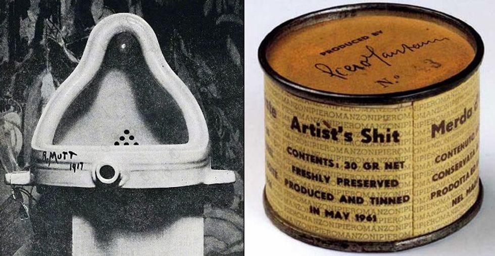 There's a great tradition of terlet-based art, of course, from Marcel Duchamp's "Fountain" -- a urinal, signed "R Mutt 1917" and entered for an art show -- toPiero Manzoni's 1961 conceptual project in which he canned his own poo and sold it as "Artist's Shit":