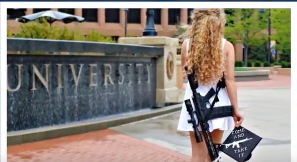 The 15 minutes for Kaitlin Bennett started ticking once she decided to pose for her Kent State graduation photos with an AR-10 death machine strapped to her back like someone unfortunate enough to live in a war zone or desperate enough to crave attention no matter how silly it makes you look: