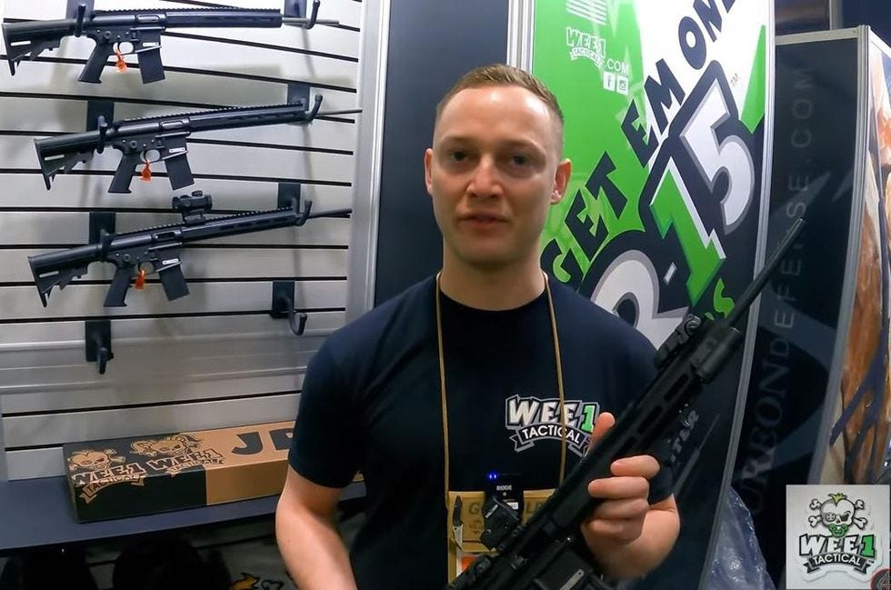 In (so-far) unrelated news, a company called "Wee1 Tactical" is marketing a .22 caliber AR-15 knockoff rifle that's specifically designed to be kid-friendly. The "JR-15" (GET IT?) rifle is designed, the company says, with itty-bitty human beings' ergonomic needs in mind, so it's "not only sized correctly, and safe, but also looks, feels, and operates just like Mom and Dad’s gun." It weighs just two pounds, and is roughly 80 percent the size of a real AR-15 clone. It's chambered for .22 long rifle ammo, which is slower and lighter than the .223 ammo used in mommy and daddy's AR-15s. It's still quite capable of killing people; that's the ammo used in the 1979 San Diego school shooting that inspired the song "I Don't Like Mondays."