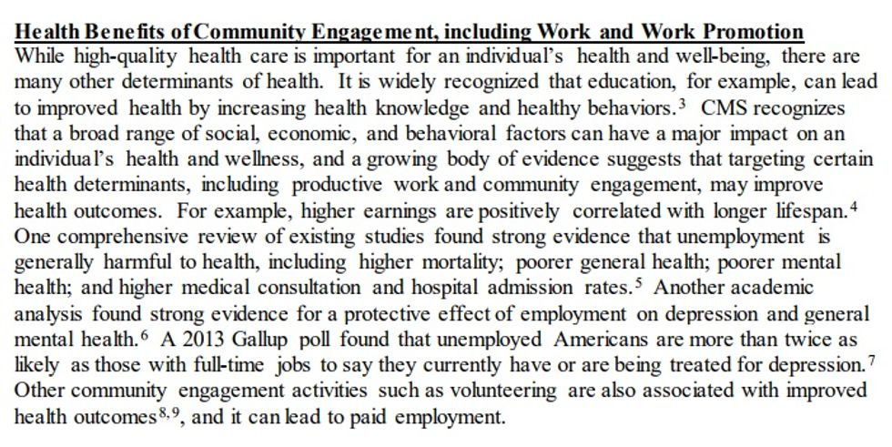 The CMS letter perversely harnesses data showing that people with productive employment are healthier and live longer into the service of a plan to take away people's healthcare if they fail to get steady work: