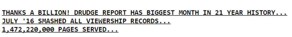 Yeah that is just Matt Drudge making a joke by himself and then linking his front page to his Twitter, saying nothing of any substance, yet people are clicking on it. And if you notice what is just above that headline ...