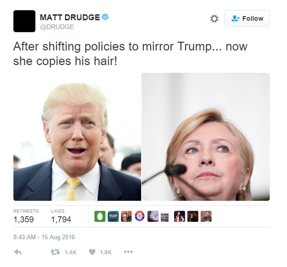 Hair Expert Matt Drudge Knows Hillary Clinton Is Super Jealous Of Trump's Luxurious Mane