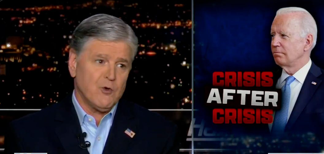 We guess somebody pulled the “oh shit” alarm over at Fox News and said it’s time to focus on what really matters: scaring the shit out of the half-dead, chairborne white racists who constitute their viewership and the Republican base. Sean Hannity, being one of the stupidest people on the network — y’all have heard what Rupert Murdoch really thinks of him — answered the call. It’s entirely possible the monologue below is something Hannity believes in his heart. He’s just not the brightest boy.