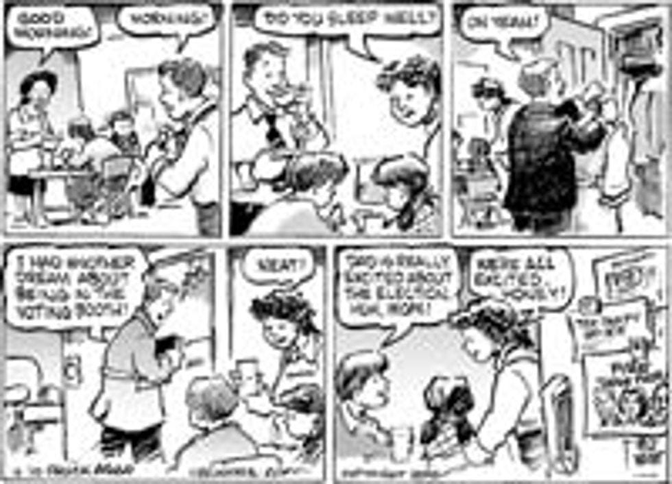 Meanwhile, clean-cut white family men everywhere are having persistent and intrusive erotic dreams about voting for Republicans. Will these dreams become so vivid that they'll be unable to distinguish the dream world from reality, as in the top-grossing film Inception? Make sure you don't vote immediately after one of these people, because the voting booth will be all jizzed up.