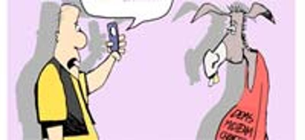 Why not take a cue from the Dem donkey, my moosey friend? He's left heartbreak behind him and is getting his picture taken for a new online dating service! Of course, first he got drunk and fat and lost a front tooth, and is now looking through heavy-lidded booze-addled eyes at the photographer, who's going to take only a terrible cell phone pic that will not get him any action on the Internet, and will probably only be posted as a cruel joke. But still, he's trying, you know?