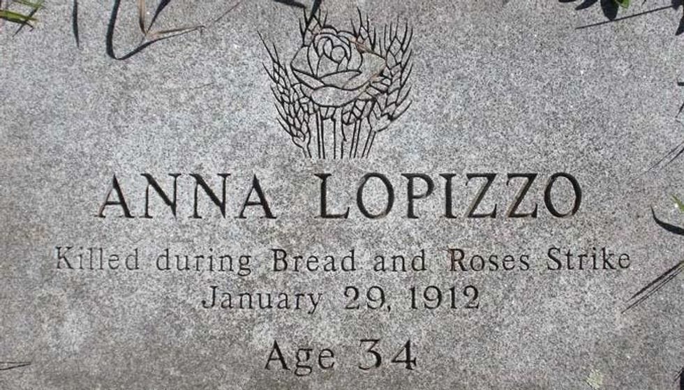 Not much is known about Anna LoPizzo, other than that she was a 34-year-old mill worker who was murdered by police officer Oscar Benoit during the 1912 Lawrence Textile Strike -- also known as the Bread and Roses Strike. Initially, police tried to charge two IWW organizers who were miles away for her murder, even though literally everyone there had seen Benoit shoot her.
