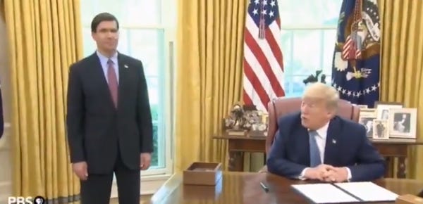 And he's not talking about some cool new missile at "Army" either. It is a cool new missile at SPACE ARMY, AKA "Space Force," because there was an event at White House today for SPACE ARMY and they showed the new flag for SPACE ARMY and Trump said "space" is "the future," which is just obvious. What are all the cool TV shows with spaceships about? The future, which is in space.
