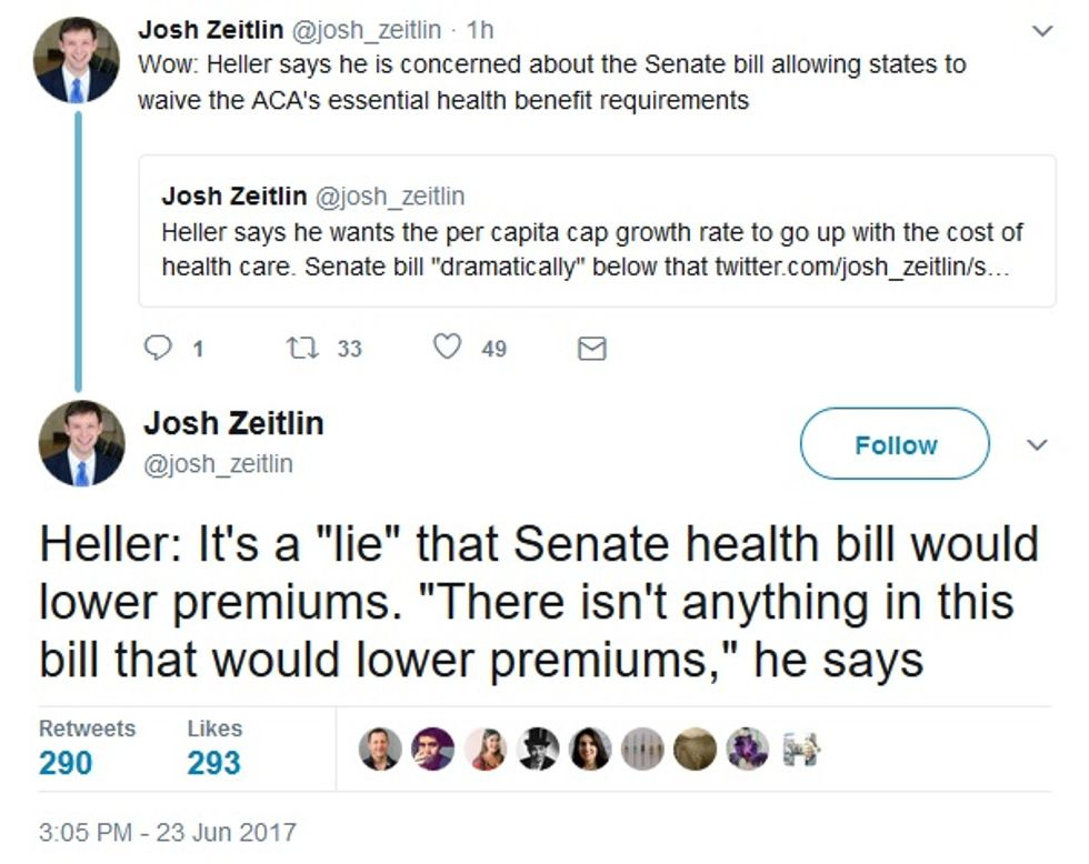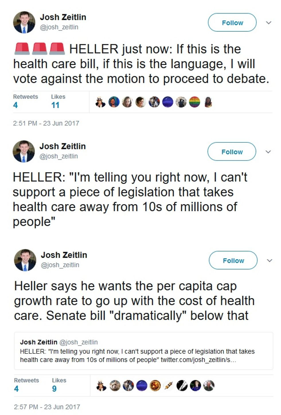 "I cannot support a piece of legislation that takes away insurance from tens of millions of Americans and hundreds of thousands of Nevadans," Heller said in a presser this afternoon. Here's more, from Daily Briefing editor and healthcare wonk Josh Zeitlin, with DRUDGE SIRENS!