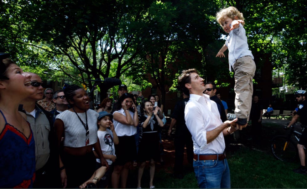 Ahoy! Let's check in with the shadow president of our American hearts, Canadian god king Justin Trudeau, and see what he has been doing the past few weeks. Before the holiday, we were just cold staring at his crotch, because there he was on the cover of the Delta Airlines in-flight magazine, throwing his crotch at us. But it turns out that, according to Trudeau's Twitter and Instaface, and according to his official photographer Adam Scotti's Twitter, he has been acting sexxxy a whole bunch lately, because he just can't stop himself.