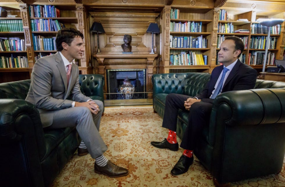 While in Ireland, Trudeau and Irish Prime Minister Leo Varadkar wore silly socks in each other's general direction, because that is a thing cute world leaders do. Did you know Varadkar is a gay? Bet he liked going to work THAT DAY: