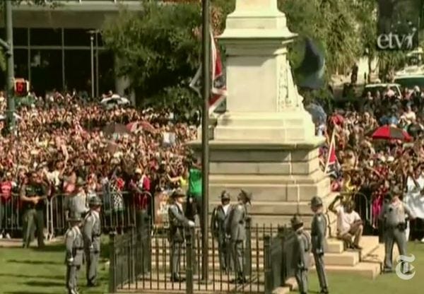 Here Goes South Carolina's Treason Flag. Bye-Bye Treason Flag! Byeeeee!
