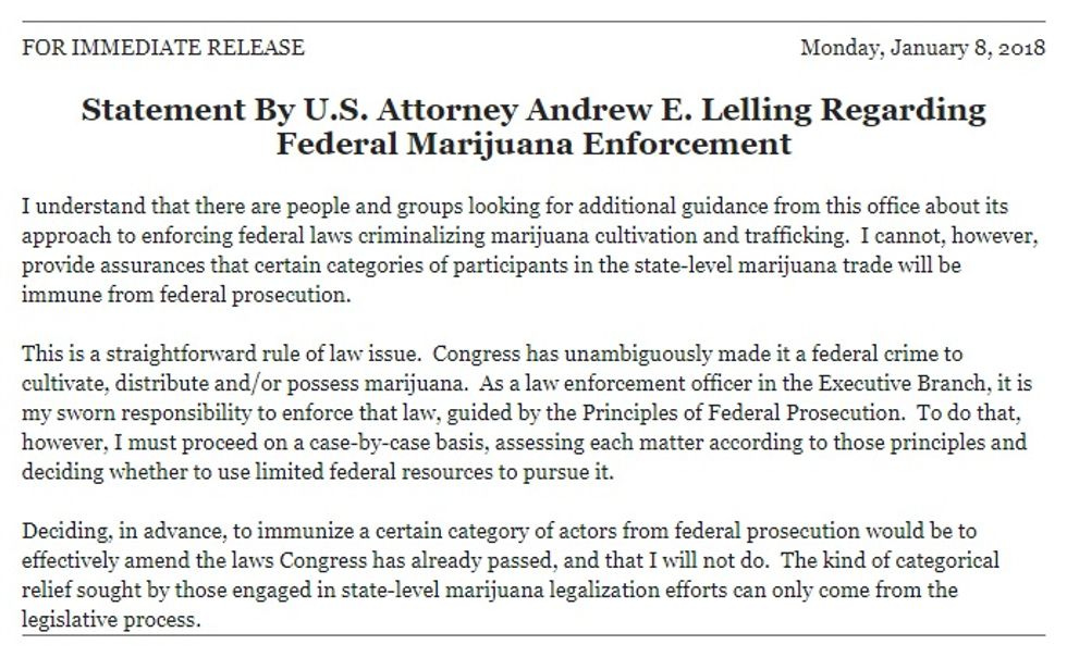 "I cannot, however, provide assurances that certain categories of participants in the state-level marijuana trade will be immune from federal prosecution."