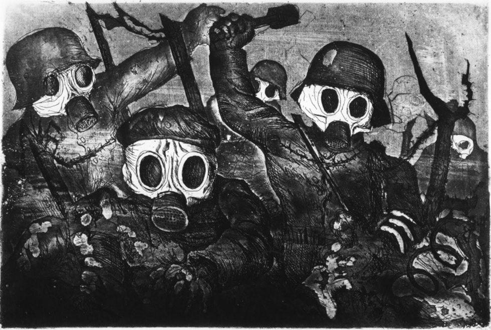 'Stormtroops Advancing Under Gas', Otto Dix, 1924 Wikimedia Commons