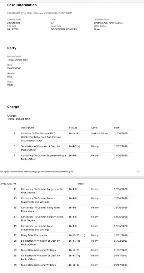 However, Reuters reports on a little oopsie that happened a little while ago, where the Georgia court website accidentally published, and then deleted, a thingie with a list of proposed charges for Trump. Spoiler, it is a lot of charges.