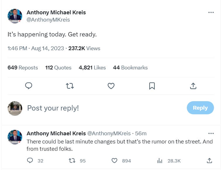 “It’s happening today,” he said. “Get ready.” According to “trusted folks.”