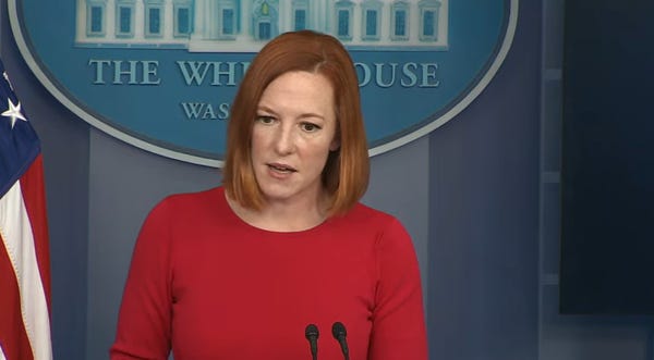 Anyway, here is Jen Psaki and Port Envoy to the Biden-Harris Administration Supply Chain Disruptions Task Force John D. Porcari, who will be talking about "supply chain," we bet.