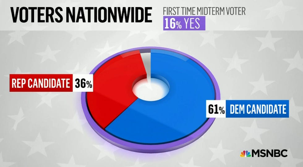 The second fact is this screengrab from MSNBC, what is talking about people who voted in a midterm for the very first time, which turns out according to the exit polls was 16 percent of the electorate. This is how they broke down in casting their votes: