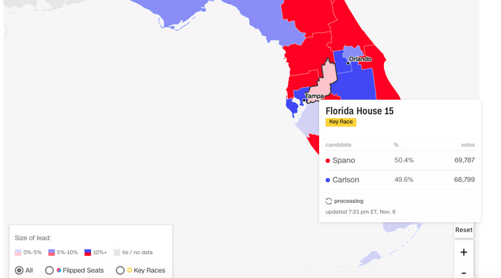 7: 25:And here is a race to keep your eye on. Florida's 15th, where Republican Dennis Ross decided not to run for re-election. It's TIGHT right now, but like we said, just keep your eye on it.