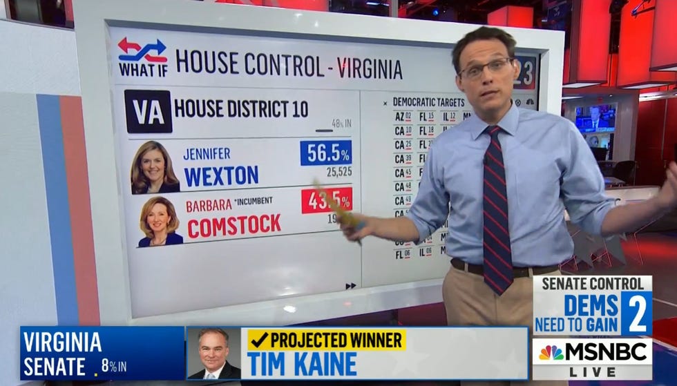 7: 40:WE HAVE OUR FIRST BIG DEMOCRATIC PICKUP OF THE NIGHT! In VA-10, Republican Barbara Comstock has been BEATED by awesome new Democrat Jennifer Wexton, according to the AP. Now, this was, out of all the districts, the one we pretty much knew any idiot could beat the incumbent Republican. But it has happened!