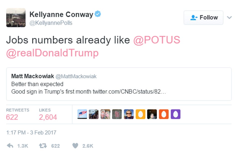 Kellyanne Conway Is So Excited About Giving Donald Trump Credit For January Jobs Report, When Barack Obama Was President