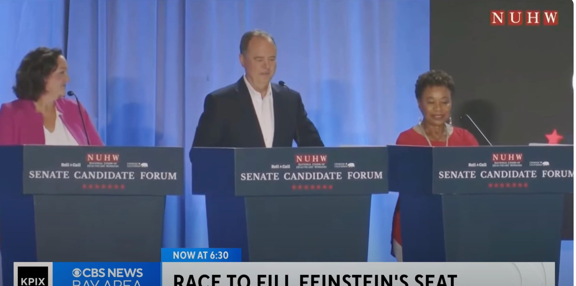 The leading candidates in the race for the open Senate seat in California face off tonight in their first debate. Democrats Adam Schiff, Katie Porter, Barbara Lee and Republican Steve Garvey have all qualified, and while I hope the Democrats assume a united “any one of us is better than Garvey” front, it’s likely that they’ll also make strong arguments for why they should land in the top two.