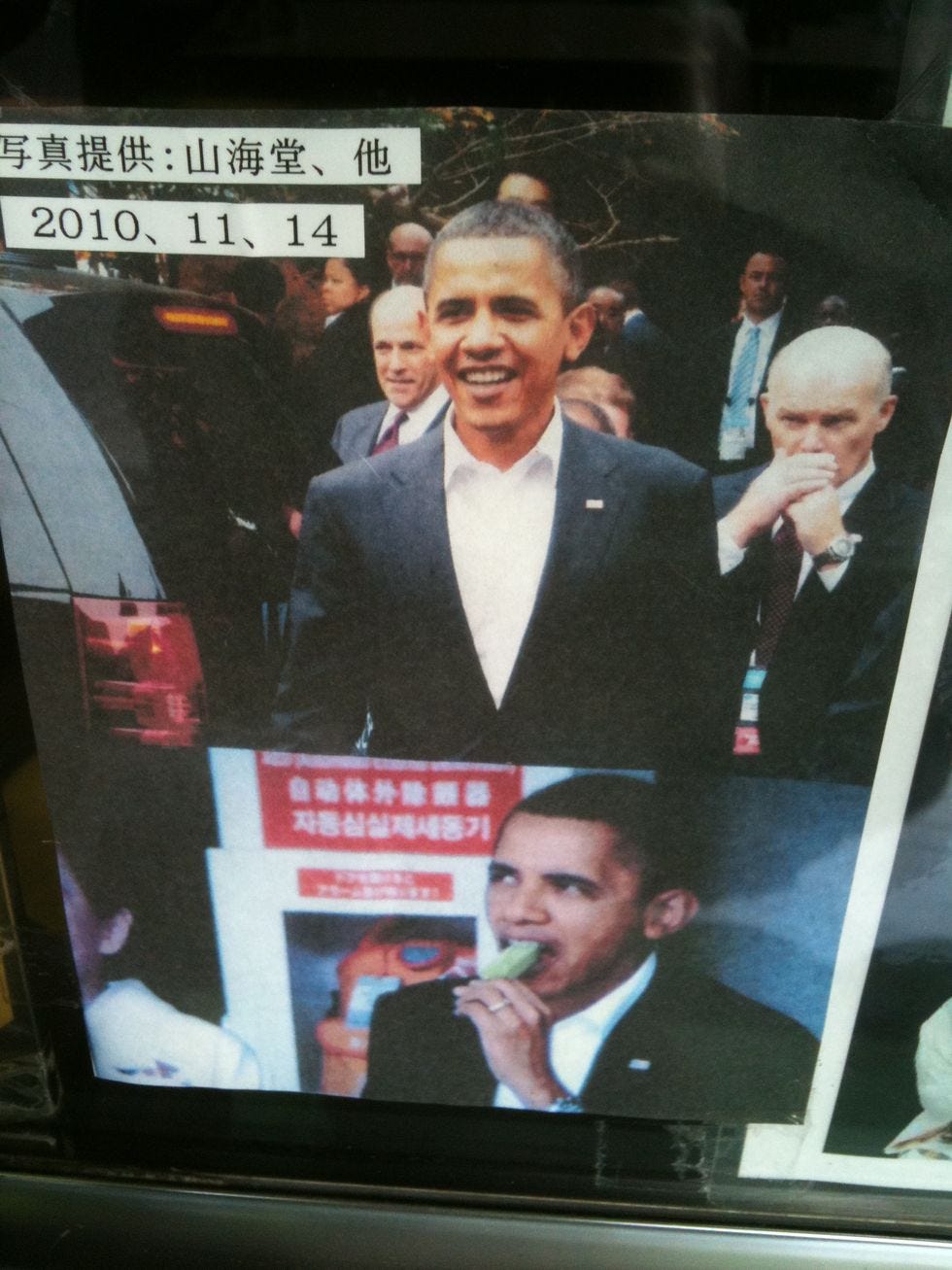 As you know, your editor was in peaceful, relaxing Japan last week for a perfectly-timed vacation. Tokyo was about as normal as one could expect a city to be in such a situation, so we won't bore you with banal details about what it's like to now have gills and the ability to shoot laundry detergent out of your eyes. You want to see the weird Obama stuff your editor stumbled upon.
