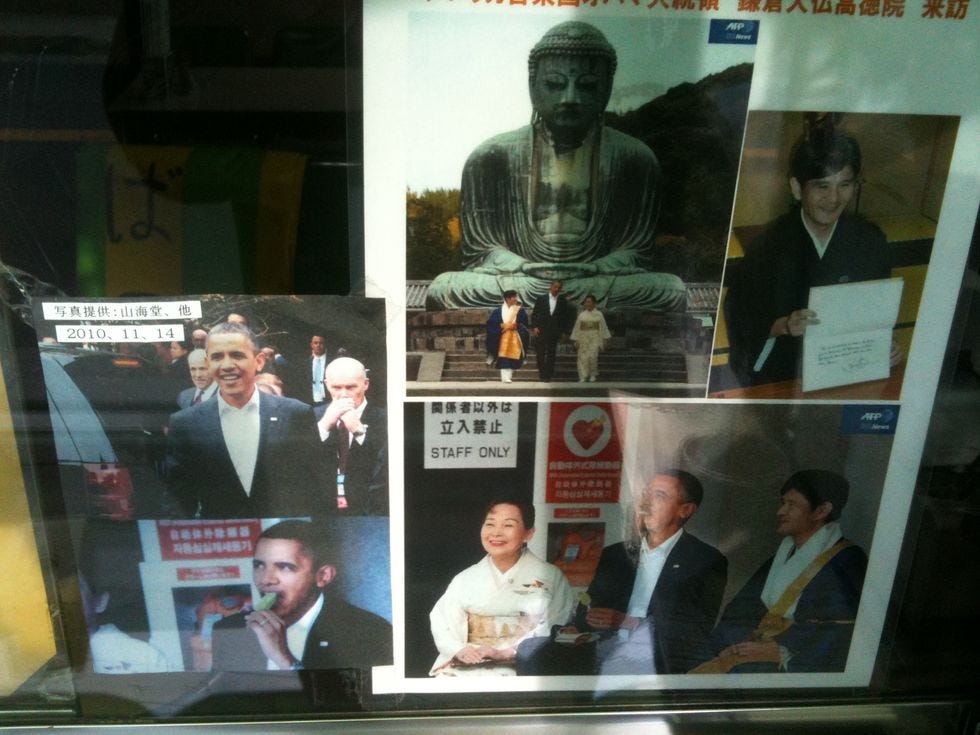 A shop in Kamakura near the Great Buddha displayed these photos to let people know why this small seaside town is significant: It was once visited by a Kenyan.