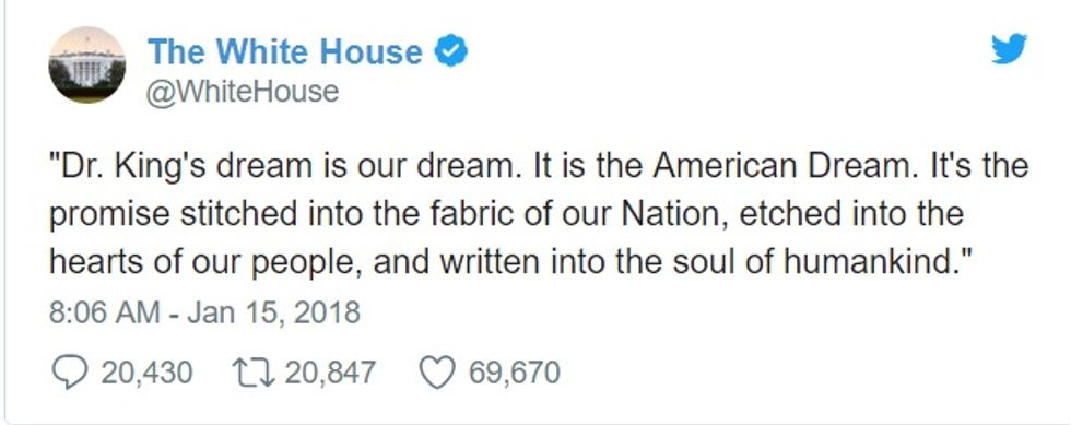You know, to remember Martin Luther King, whose dream Donald Trump said was shared by all Americans. The White House issued a very inspiring tweet about that beautiful dream: