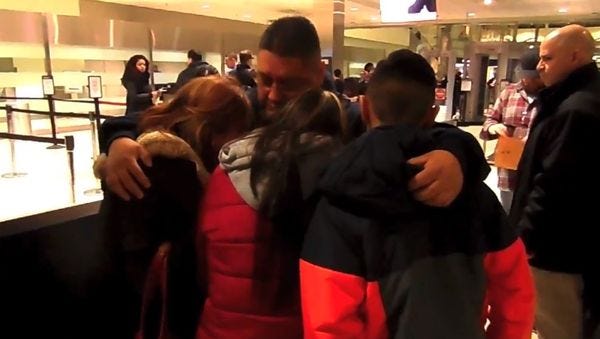 Garcia and his wife, Cindy, have spent about $125,000 on legal costs since 2005 trying to find a way for him to stay in the country, but it turns out that just being married to a citizen won't win a green card. There goes another myth, not that anti-immigration wingnuts will ever give it up. He'd been ordered removed in 2009, but granted several stays of removal since then. Not under Donald Trump, though, because Trump promised to get rid of all the dangerous criminal aliens who are causing American Carnage. So the landscaper from the Detroit suburb of Lincoln Park, who'd always paid his taxes and followed the law (apart from viciously letting himself be brought here when he was nine, of course), had to say goodbye to Cindy, and to his daughter Soleil, 15, and his son Jorge Jr., 12, at Detroit Metro Airport, while ICE agents stood nearby to make sure he didn't make a run for it.