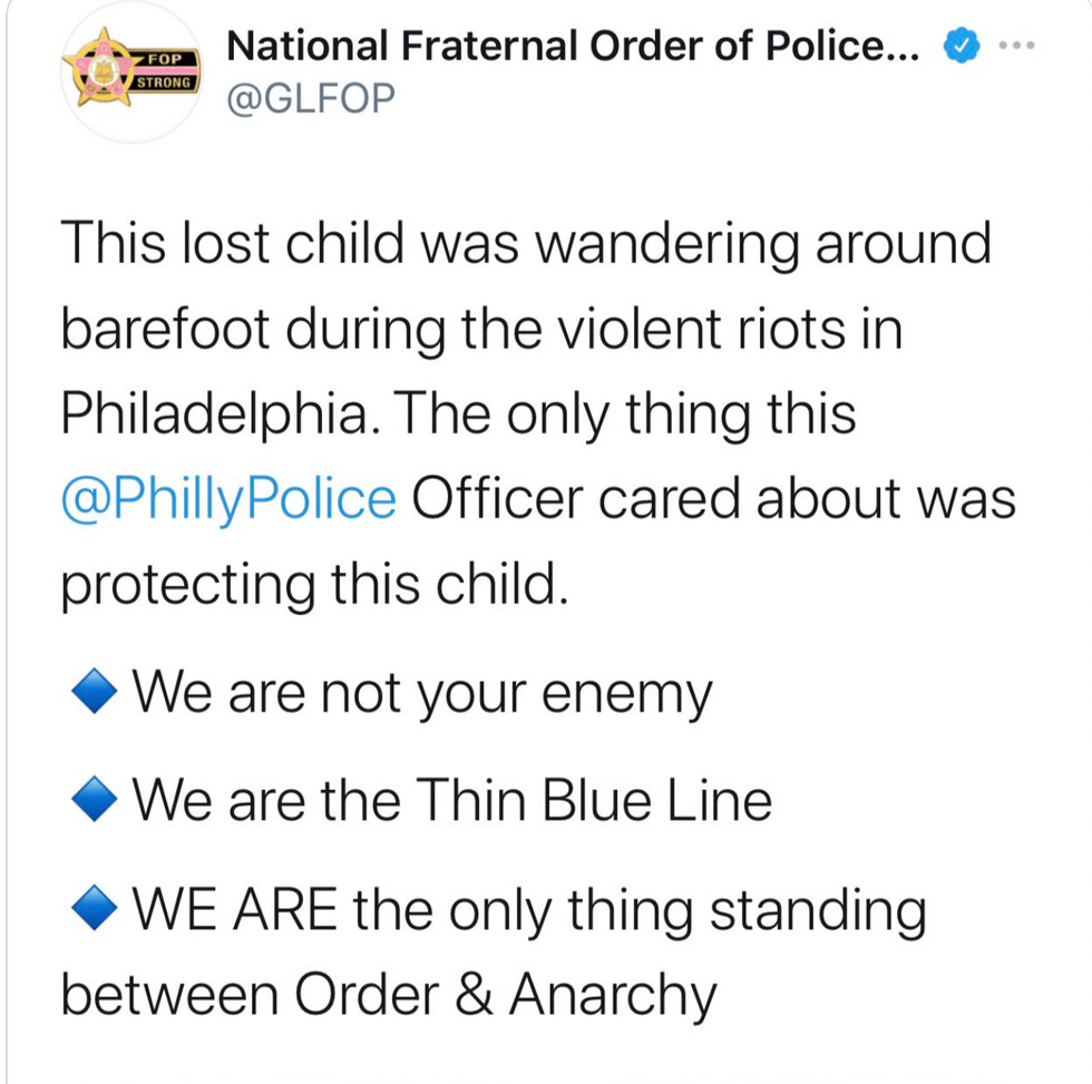 Last week, Philadelphia police presented themselves online as public servants concerned about the safety of Black children. That's when you knew something was up. Cops busting heads, I can believe. Cops providing comfort to a scared child is probably a photo op.