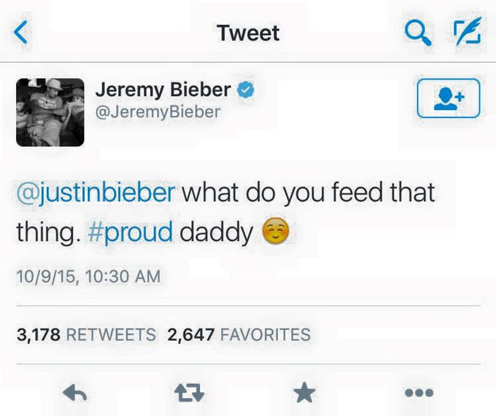 You might have heard about the leaked Bieber Pien pics (NSFW unless you work with a bunch of shrieking Beliebers or homosexuals), but have you seen what Justin's dad tweeted?
