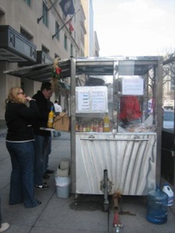 Chipotle and Baja Fresh ain’t got nothin’ on Pedro and Vinny’s burrito stand on 15th and K St. While the humble Street Cart only sells bean burritos, the ten people waiting in line swear by them. The burritos come with rice and fresh salsa, but cheese will cost you an extra quarter.