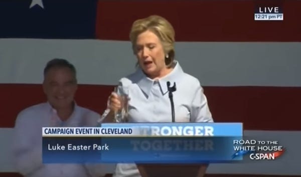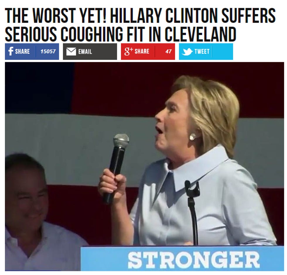 With the way mainstream media outlets (not to mention Fox News) are fucking up lately, ginning up fake outrage about nonexistent Hillary Clinton "scandals," so many news organizations are going to have to delete their accounts, and then there will be no accounts no more, except Wonket and a couple other websites. You know all those hilarious conspiracy theories out there about how Hillary Clinton is dying of herpes and syphilis and ennui and whatnot? Well, Hillz did a rally in Cleveland, and at one point, SHE COUGHED. And not only did she cough, but she went on a coughing jag, which is something people do 1) when they are secretly dying or 2) when their throats get dry, or something gets caught back there, maybe because they have been, oh, we don't know, DOING A LOT OF PUBLIC SPEAKING LATELY?
