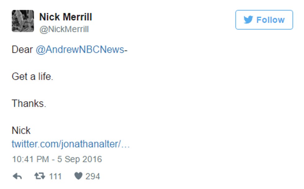 Speaking of tweeting, lots of people are tweeting at the NBC reporter, Andrew Rafferty, about how much he sucks. You shouldn't pile on, unless you want to, we are not your real dad and you can do what you want.