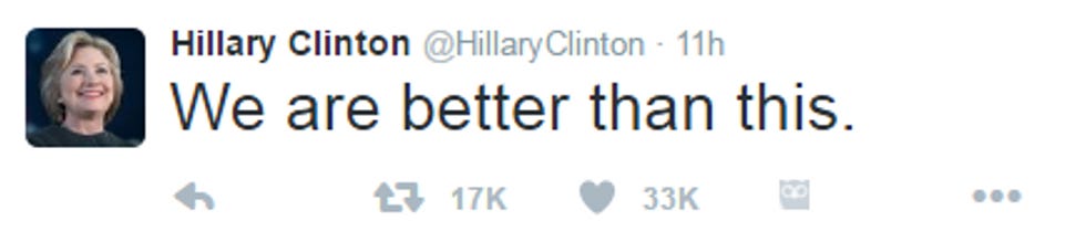 Anyway, Hillary tweeted other things too, and you are free to peruse her Twitterface page at your leisure. One tweet that she sent out, though, pretty much summed it all up: