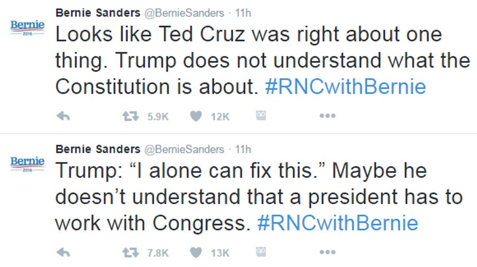 BONUS: Did you know Hillary Clinton was not the only person using Twitter on Thursday night? It's true, they let anybody use it these days! Bernie Sanders was tweeting right along: