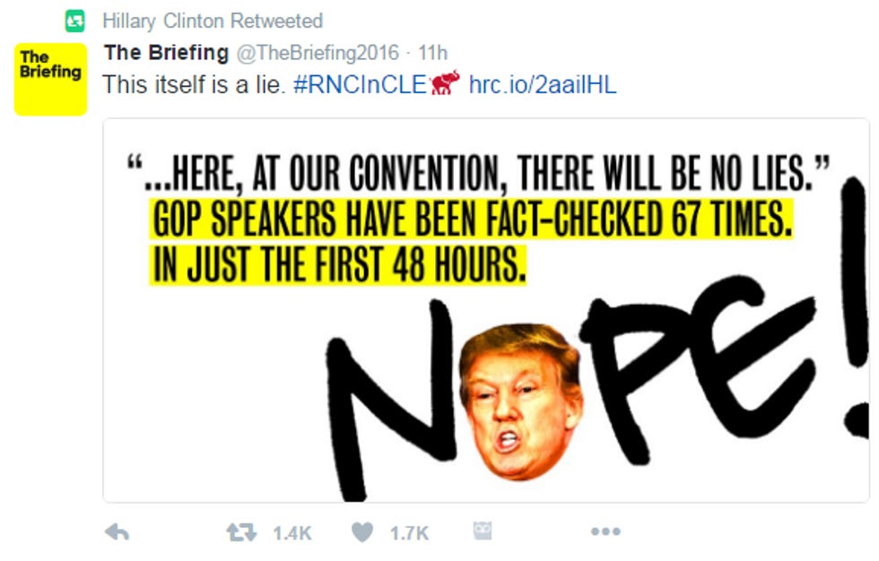 [wonkbar]<a href="https: //wonkette.substack.com/p/rnc-night-four-lets-watch-the-trumpendammerung-together-a-livebloog"></a>[/wonkbar]Know who else was not impressed? It was Hillary Clinton, who will be crowned the queen of the US American Democratic Party next week in Philadelphia. Usually, it's Trump live-tweeting things, but this time it was Hillary. Here's one of the first tweets she sent, to kick things off: