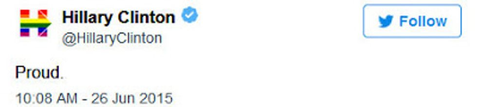 Oh Wonkers, you are such damaged souls, and you are not even allowed to comment about it. But buck up, buckaroos, there is a new day on the horizon! WE ARE A MARRIAGE EQUALITY NATION, and your once and future Queen Of America, Hillary Clinton, is here with a heartwarming message about how "gay rights are human rights, and human rights are gay rights." Which is just SILLY, because #NOTALLHUMANS. C'mon, Hillary! Get with the program!