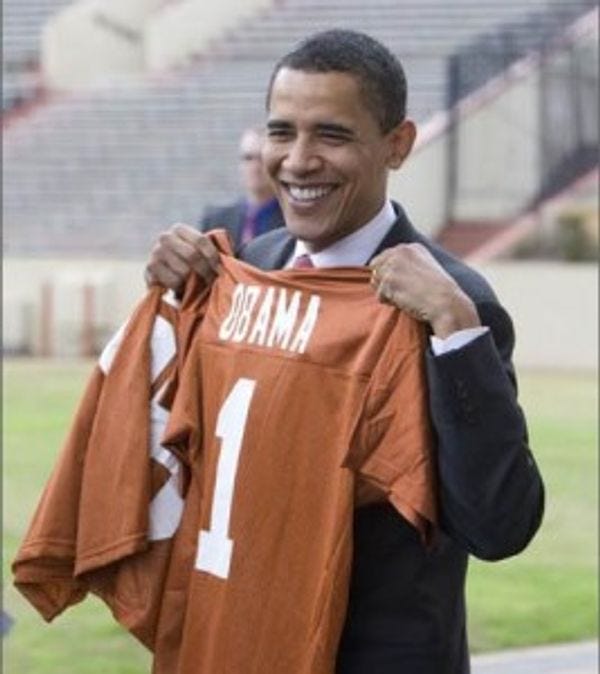 Why is our Savior donning a football jersey? In between firing black people and brainwashing children, even he knows that the end of summer means the start of football season. College football began this past weekend and the NFL starts sometime soonish too. Thus, you will need bars, bars with MULTIPLE TEEVEES (in high definition, of course) where you can watch all this joyful gayness, and so we give you sports bars: