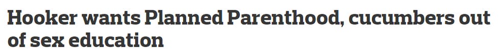Goddamn that Planned Parenthood, trying to keep kids from getting pregnant or acquiring STDs. Surely, if the children just get sex ed from a Hooker -- Tom Hooker to be precise -- they'll eschew all sexual contact until they get opposite-sex married in God's eyes. We know this is possible, because of how teens ALWAYS listen to grown-ups who tell them not to have sex, and they NEVER listen to their hormones instead.