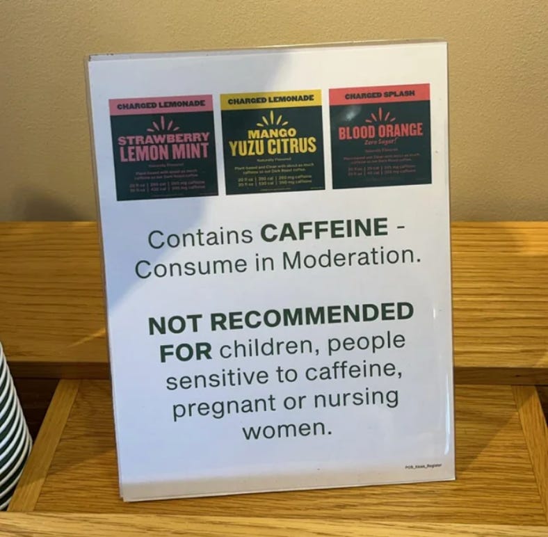Now, you would think that, upon hearing about the lawsuit, Panera would immediately stop selling the lemonades. They have not! What they’ve done is put up a warning sign that, frankly, will probably make the drink seem super cool to teenagers — some of whom could very well have undiagnosed heart conditions.