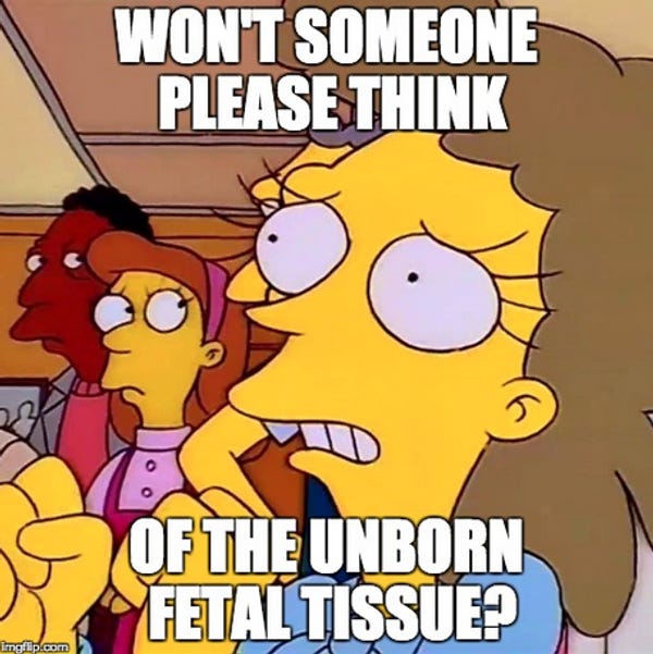 Yeah I think the real "problem" with this whole thing is that Planned Parenthood was donating fetal tissue to "scientific research" instead of selling it to Chick-Fil-A as "meat filler" for a tidy profit.