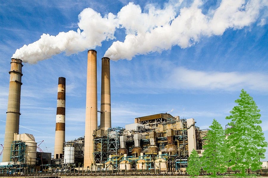 It's the Bob Ross Climate Plan: Put some happy little trees down in the corner of the refinery.