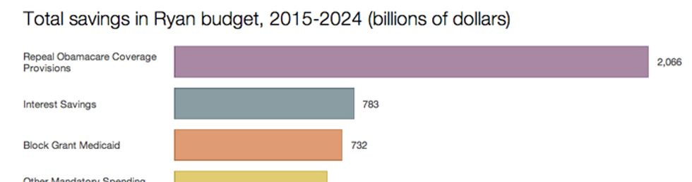 The Ryan budget also would repeal Obamacare, strip away $792 billion for Medicaid expansion and privatize Medicare, turning it into subsidies that the elderly could use to buy private insurance plans.