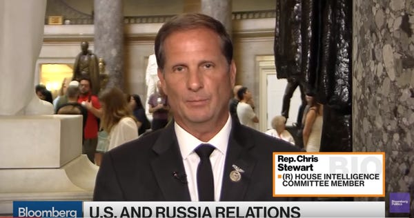 Enter GOP Rep. Chris Stewart of Utah, who sits on the House Intelligence Committee, AKA the committee whose members really should know better, even the Republicans, but unfortunately they don't because A) they're idiots and B) they've been sucking at Devin Nunes's dairy cows' teats (ALLEGEDLY) for too long: